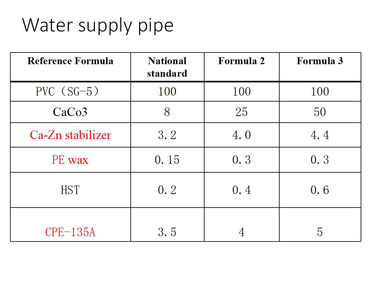 Some recommended formula for PVC pipe application.